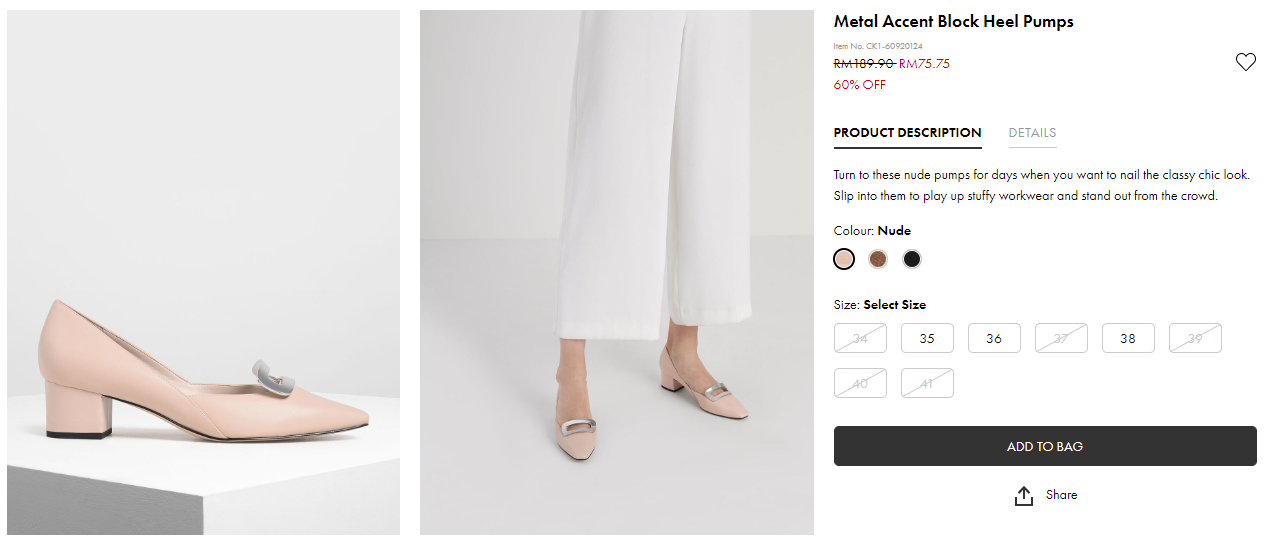 ▼ Metal Accent Block Heel Pumps —— 折扣60%后只需RM75.75 (原价:RM189.90)