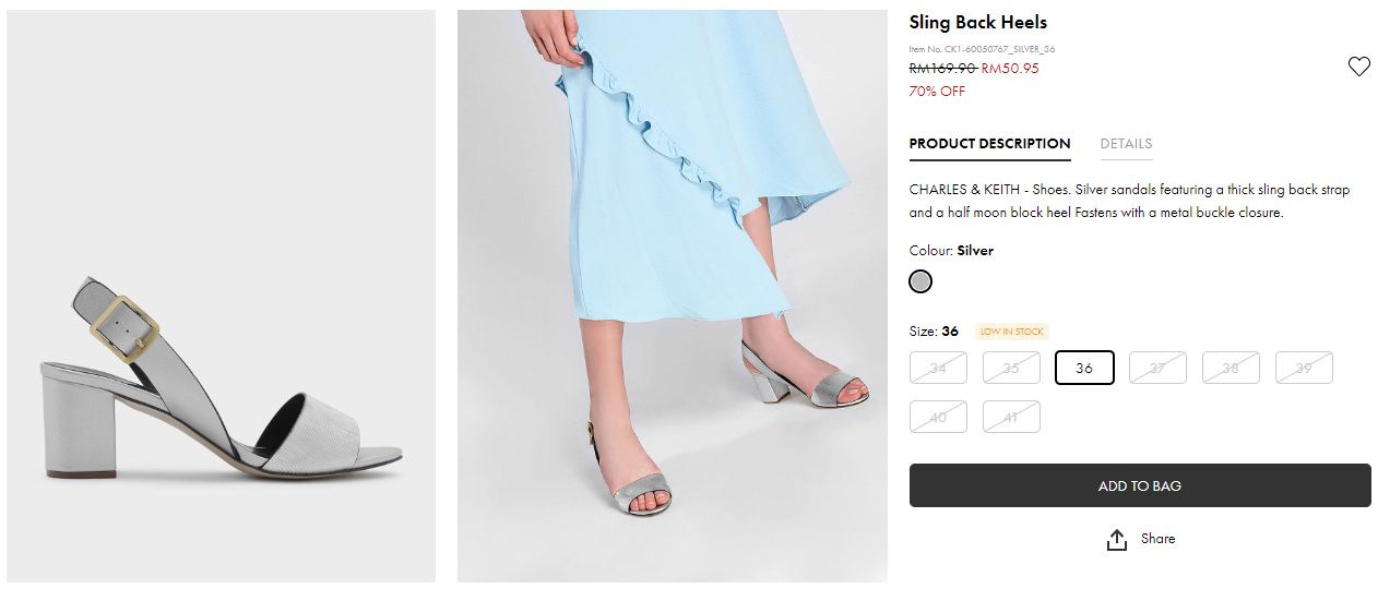 ▼ Sling Back Heels —— 折扣70%后只需RM50.95 (原价:RM169.90)