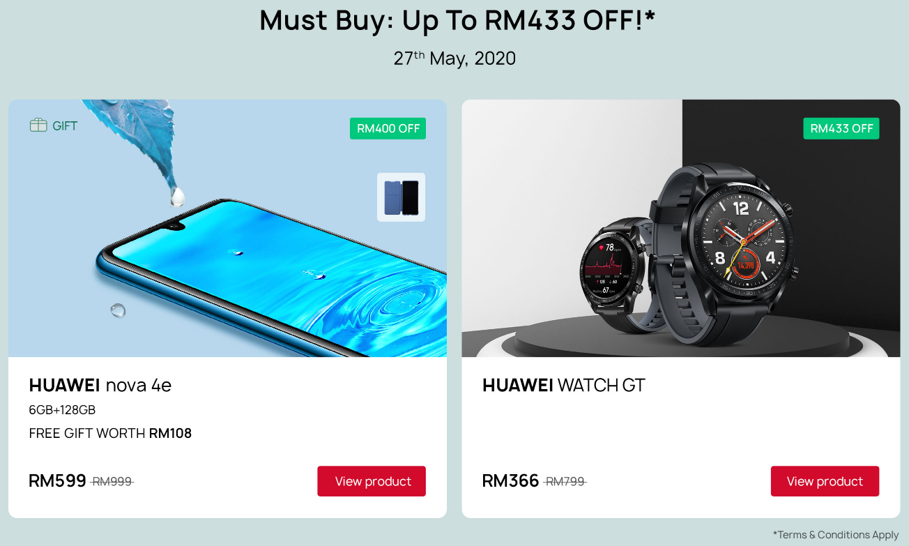 这项优惠从即日起至5月27日,在 Huawei 官方网站推出限时大优惠!促销的商品中有智慧型手机、智能手表、手机壳及 Power Bank 统统都享有优惠折扣!