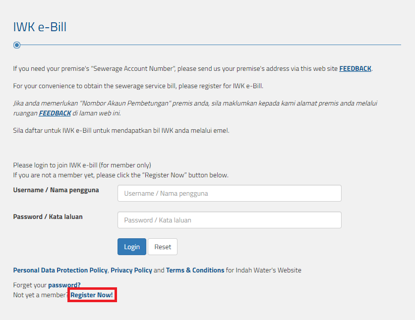▼ 现在我们来看看如何在 Indah Water 的官方网注册吧!