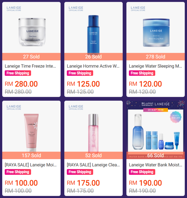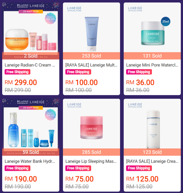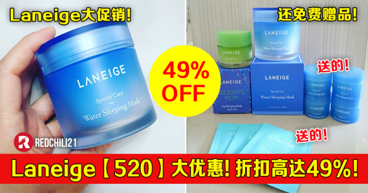 如今大马 Laneige 与著名网购平台 Lazada 联合推出【520】大促销,折扣高达49%!