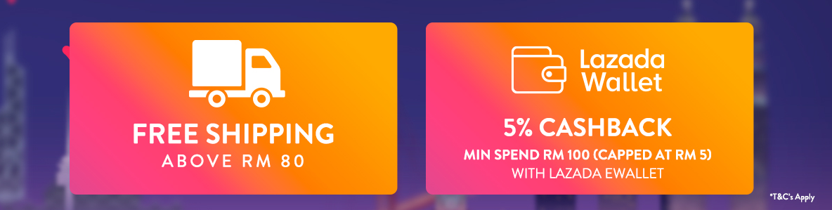 ▼ 还有~购买RM80以上产品可免邮寄费用!若你是使用 Lazada Wallet 付款并消费RM100或以上,可获得5%现金回扣!只限2020年5月20日当天!