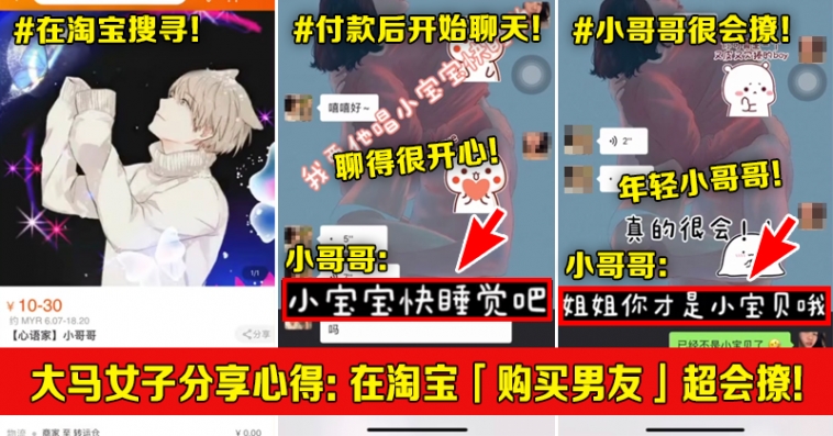 一名大马女子在淘宝网搜寻「在线男朋友」,结果真给她找到一个“虚拟男友”!只需用很便宜的价格,就可以买到一个限时男友陪妳聊天、甜言蜜语、嘘寒问暖!