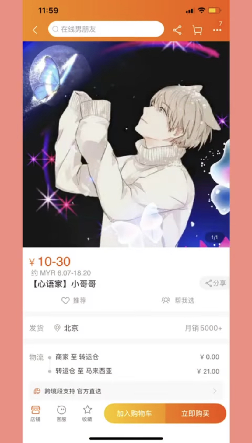 ▼ Leona在淘宝网搜寻「在线男朋友」:「【心语家】小哥哥」只需 RM6.07 至 RM18.20。