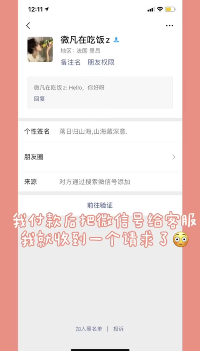 ▼ Leona 写道:「我付款后把微信号给客服,我就收到一个请求了。」