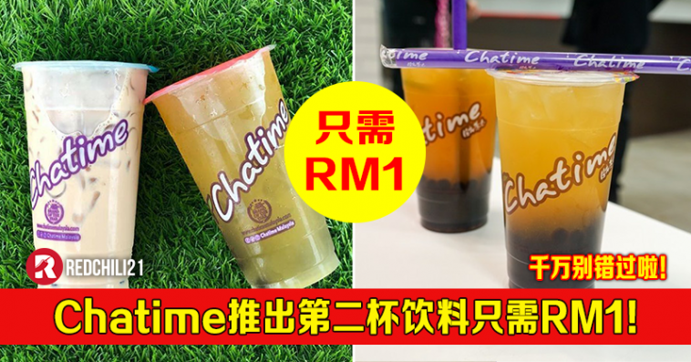 促销活动:Chatime —— 第二杯饮料只需RM1