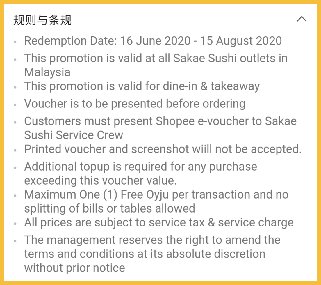 - 点餐前必须展示 Shopee e-Voucher 优惠券给工作人员