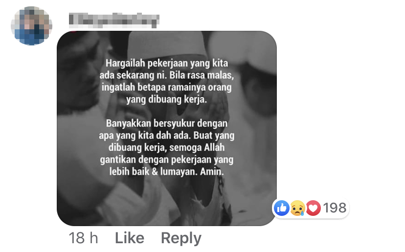 大马网友发文引人省思!“有工作该感恩!现在数千万个人失业了!”