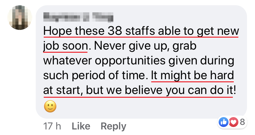 令人心痛的是,这38位遭解雇的职员当中,还包括了在那里工作长达15年的资深员工。