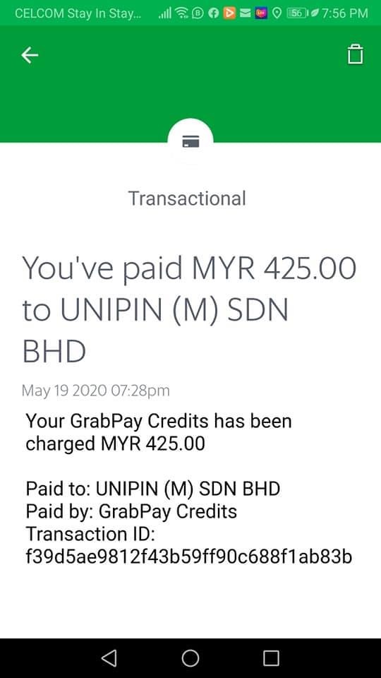 重点来了,我从未使用过 Grab Pay 而且里面又没有钱,它竟然很快的从 credit card 转去 Grab Pay,再转去一个叫 Unipin (m) SDN. BHD.