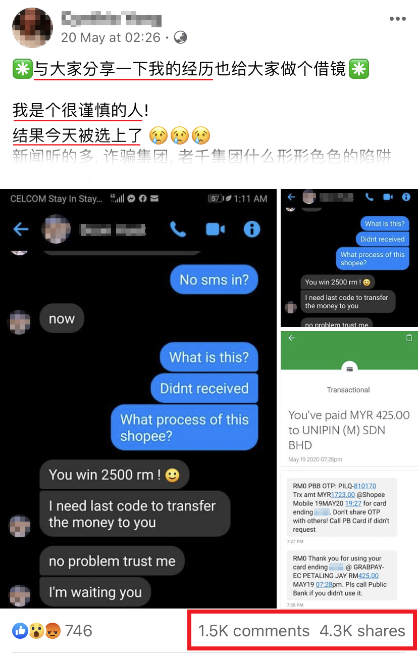 上当受骗的案例层出不穷,大家都会认为受害者一定是相信了骗子的话所以才会中了圈套。这位大马网友就用自己的经历提醒大家,即使再小心防范还是中了!