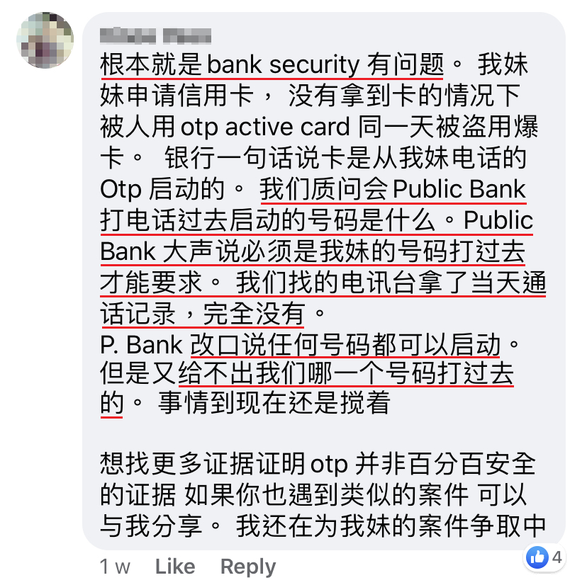 这位大马网友在帖文里强调,自己平时并没有使用电子钱包的习惯,为了方便搭车,唯有 Grab App 是绑定了信用卡。事情发生的时候,她没有给出 OTP 号码,但钱仍然被转走了!