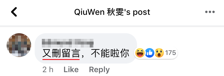 ▼ 秋雯将该帖文删除,让网民们更为气氛!