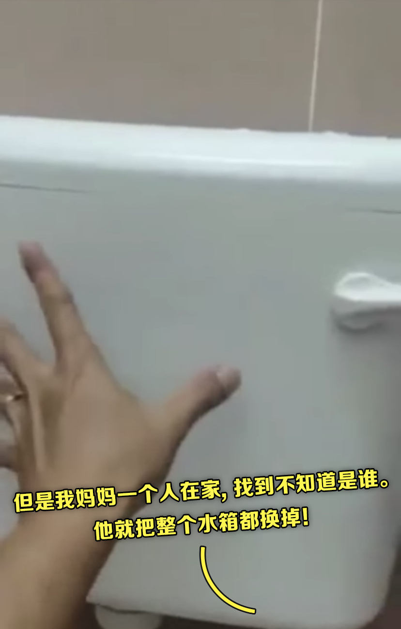 该水喉匠来到以后,并不是将手柄换掉,而是换上一个全新的水箱。不是修手柄,而是换掉整个水箱。让屋主相当无语!