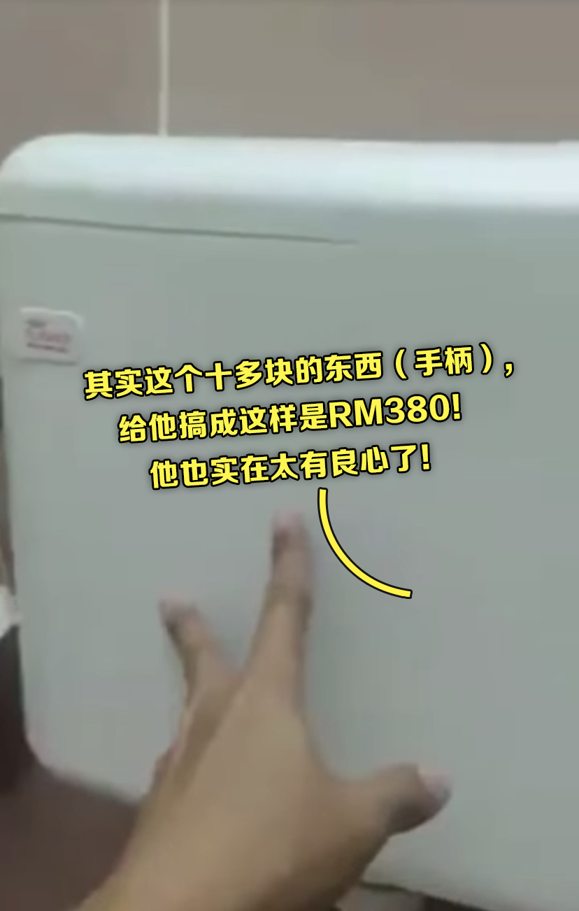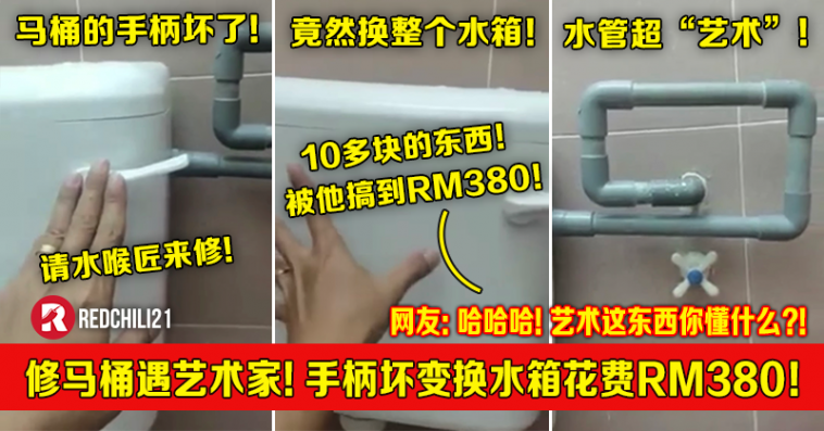 日前一段影片在社交媒体流传,屋主苦诉明明坏的只是一个小小的马桶手柄,结果却被迫花了 RM380 换新的水箱,最重要的是水管还“艺术”般的被“整”了!网友们看了以后都笑翻!