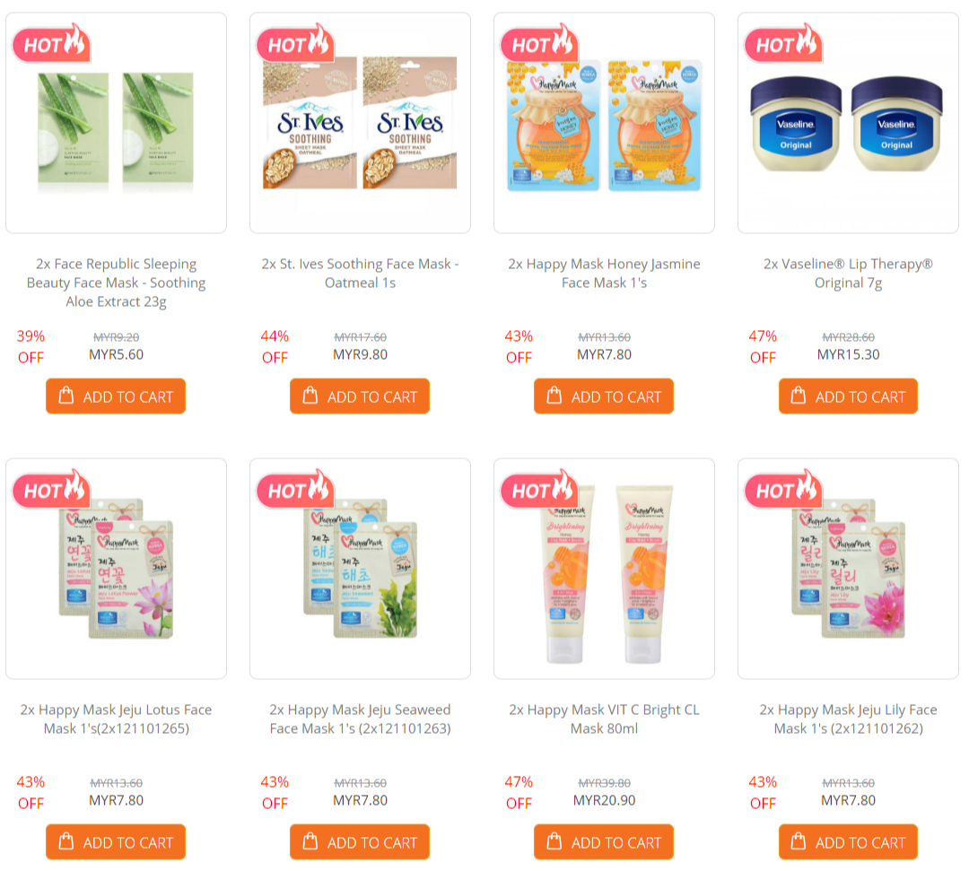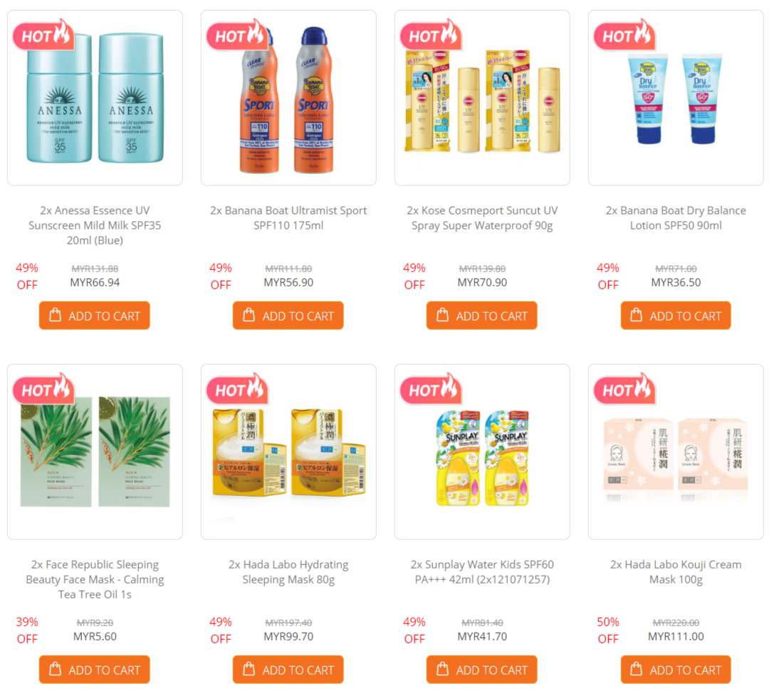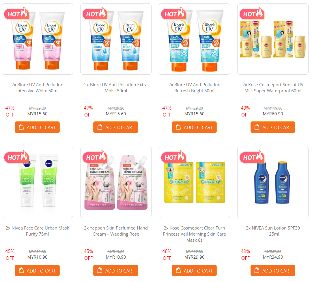 在这次优惠中,促销的商品包括:防晒霜、面膜及护唇用品,都可享有折扣高达50%优惠!