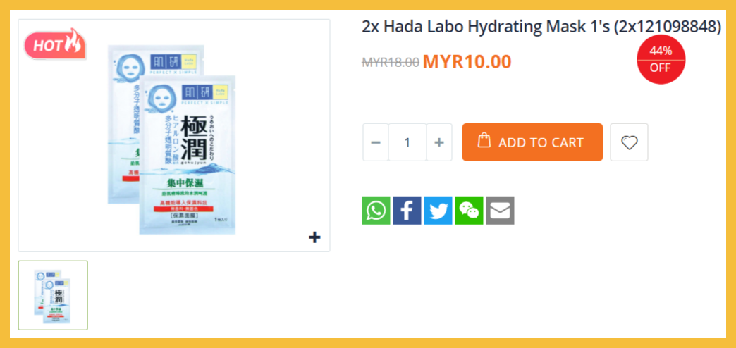 ▼ 2x Hada Labo Hydrating Mask 1’s —— 只需RM10(原价RM18)