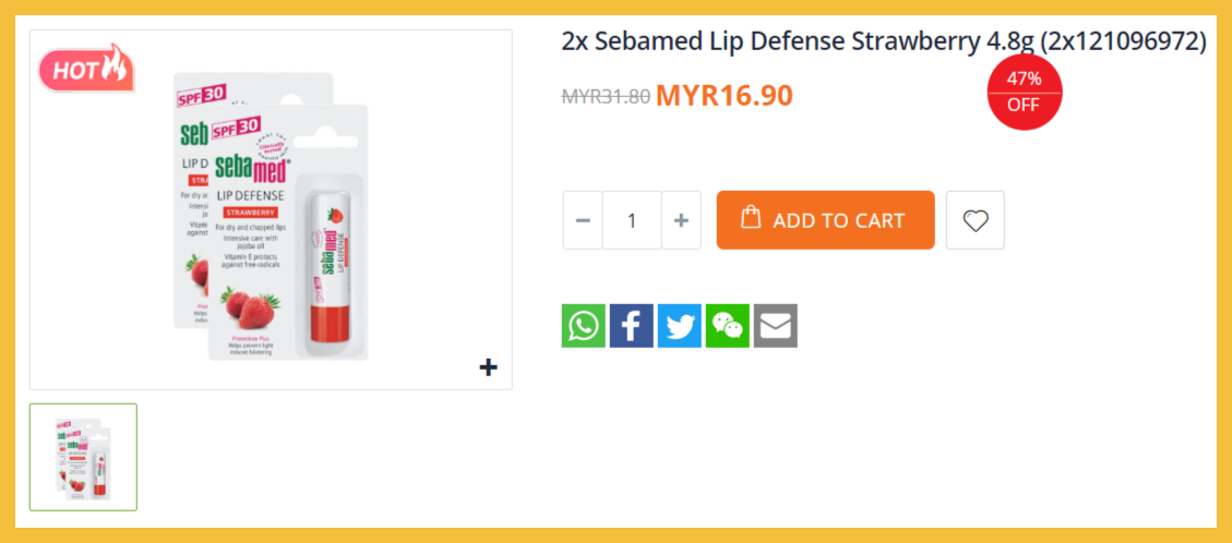 ▼ 2x Sebamed Lip Defense Cherry 4.8g —— 只需RM16.90(原价RM31.80)