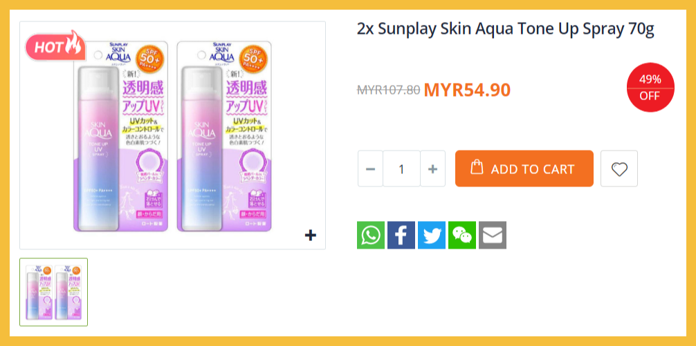 ▼ 2x Sunplay Skin Aqua Tone Up Spray 70g —— 只需RM54.90(原价RM107.90)
