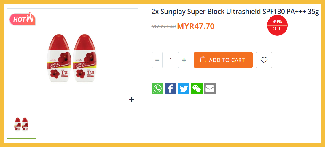 ▼ 2x Sunplay Super Block Ultrashield SPF130 PA+++ 35g —— 只需RM47.70(原价RM93.40)