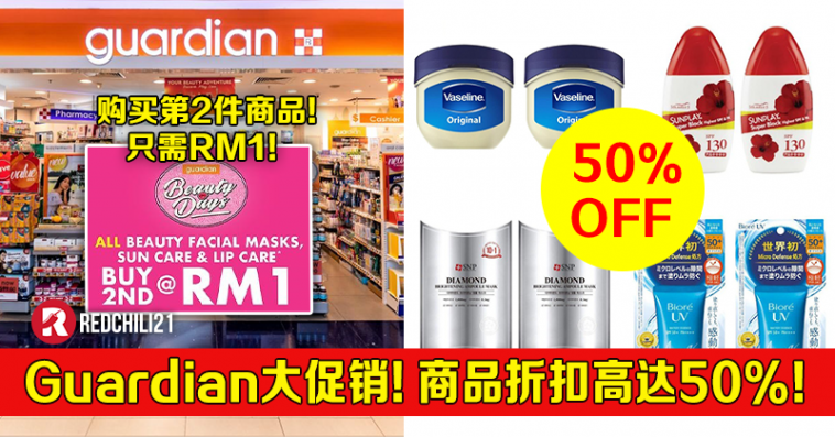 好消息!大马 Guardian 从即日起推出大优惠!折扣高达50%!而且,还推出第二件商品只需RM1!