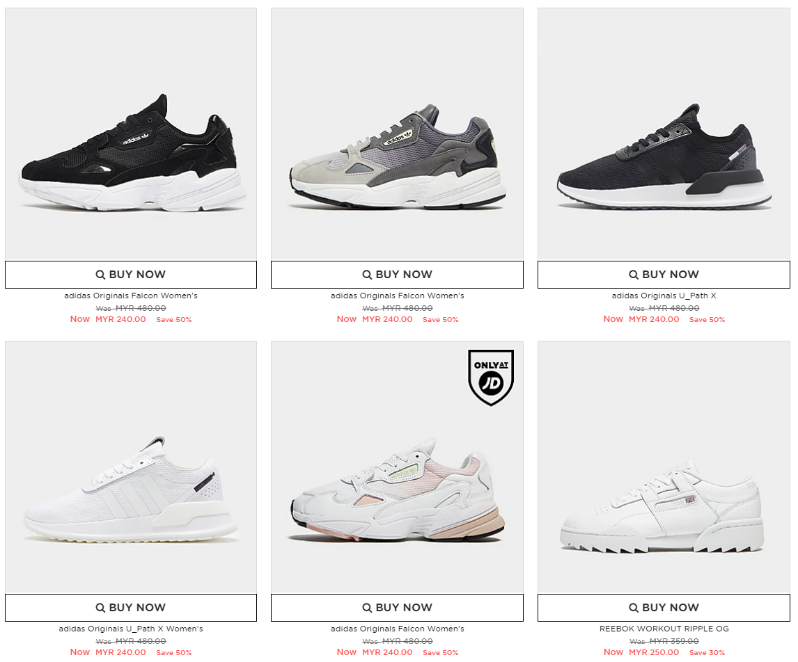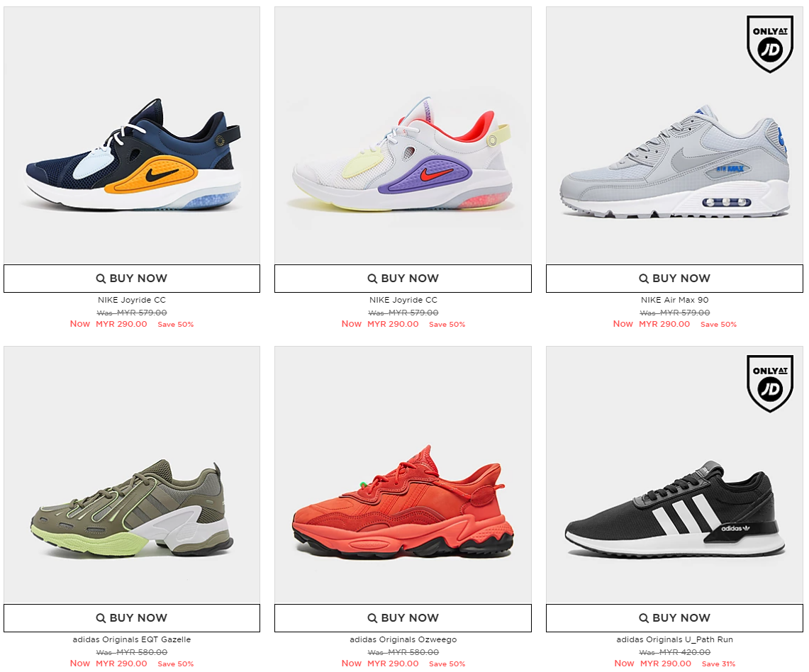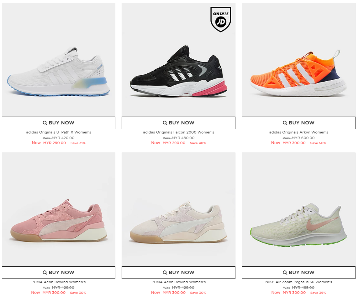 在这次优惠中,不管是男装或女装的鞋子及运动衣物统统都享有优惠!不过,只限 JD Sports 的官方网才享有此促销啦!