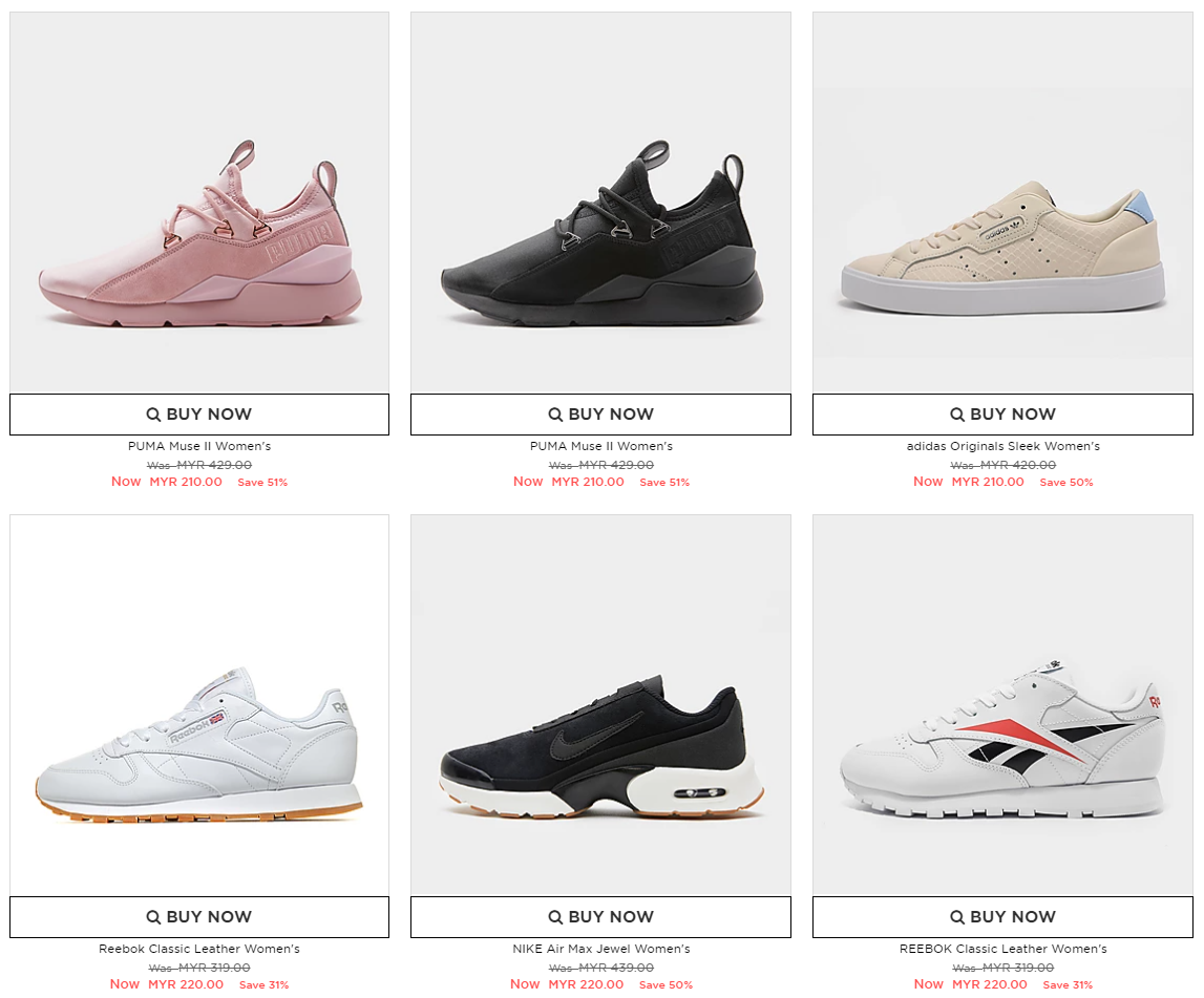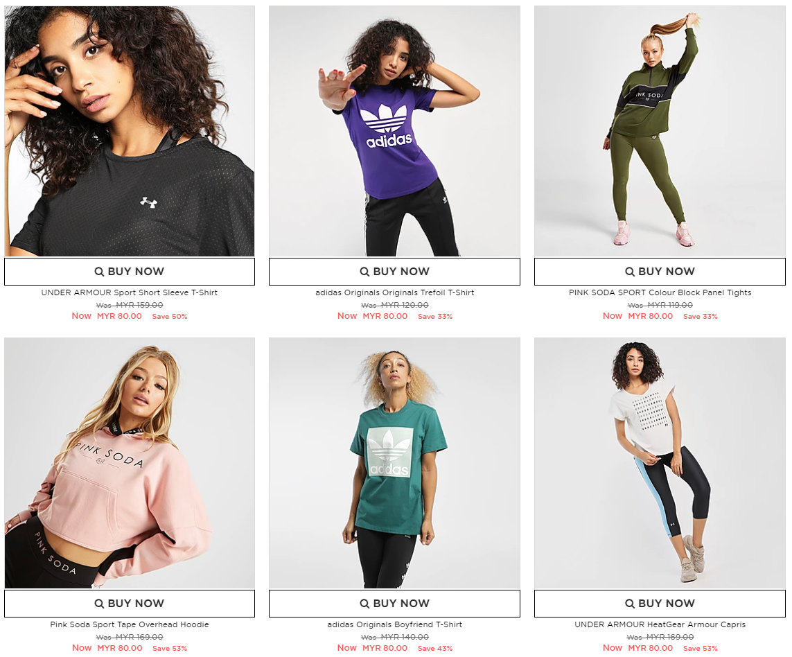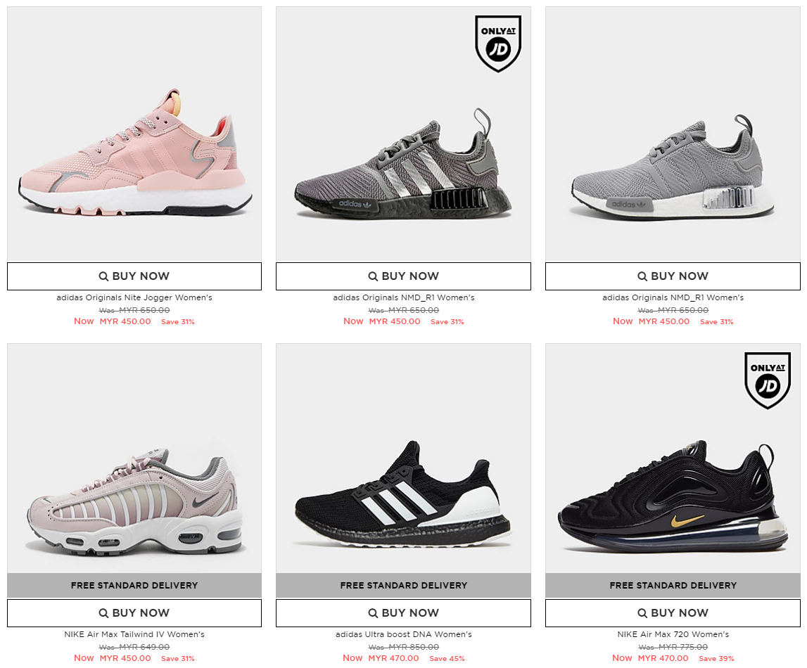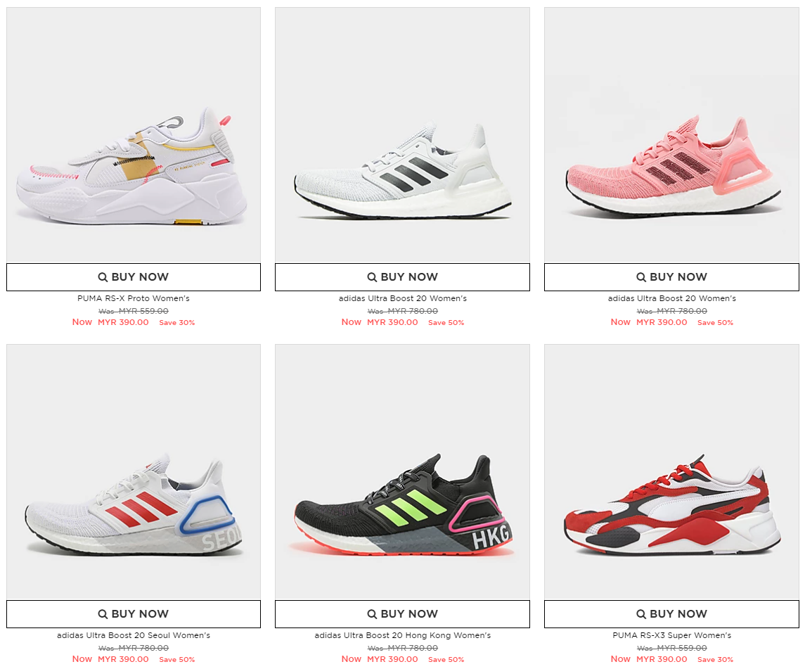 在这次优惠中,不管是男装或女装的鞋子及运动衣物统统都享有优惠!不过,只限 JD Sports 的官方网才享有此促销啦!