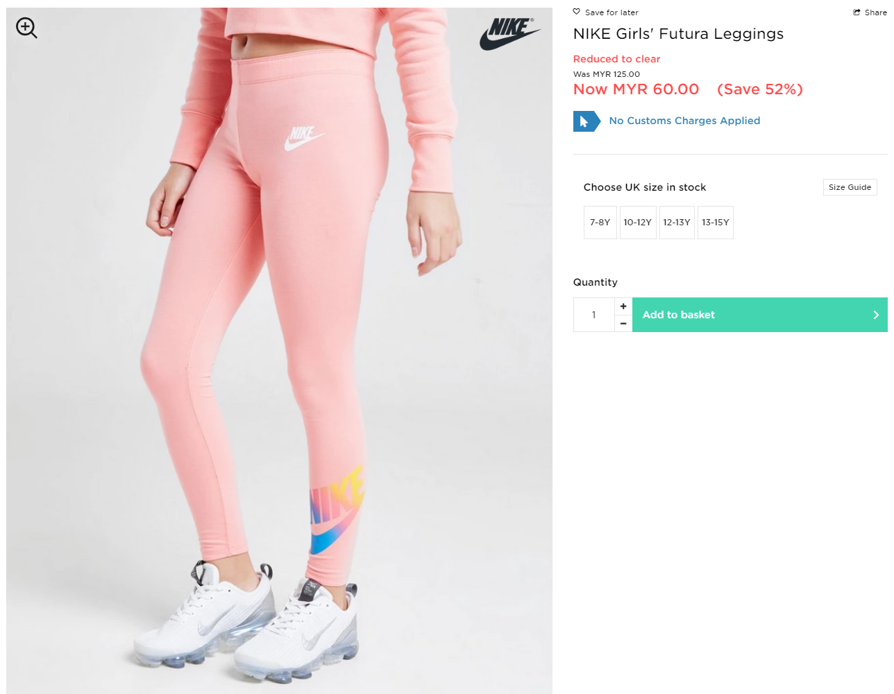 ▼ NIKE Girls’ Futura Leggings – 只需RM60(原价:RM60)