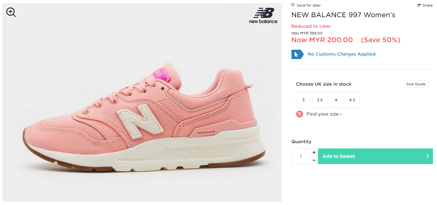▼NEW BALANCE 997 Women’s – 只需RM200(原价 RM399)!