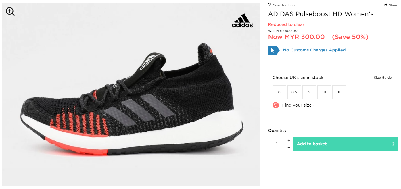 ▼ ADIDAS Pulseboost HD Women’s – 只需RM300(原价 RM600)!