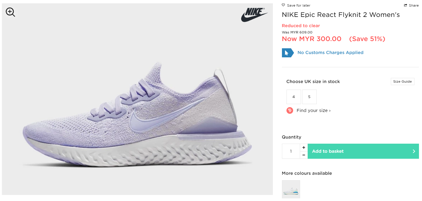 ▼ NIKE Epic React Flyknit 2 Women’s -只需RM300(原价 RM609)!