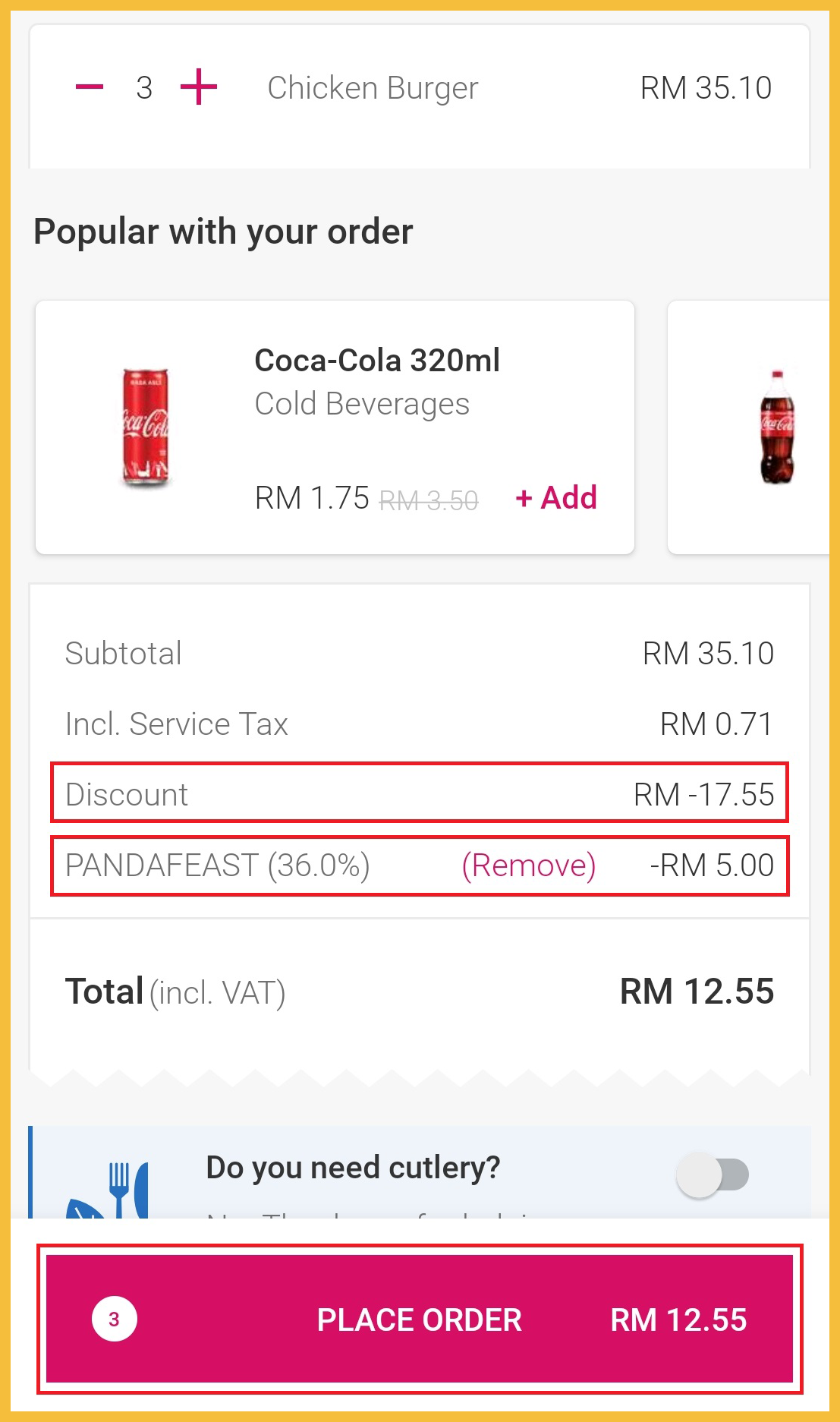 步骤5:然后点击「Place Order」!(此优惠必须消费RM20或以上)