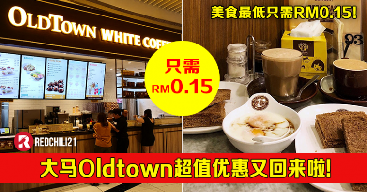 吃货们,又有好康优惠要告诉你!大马 Oldtown 超值优惠又回来了,最低只需RM0.15!