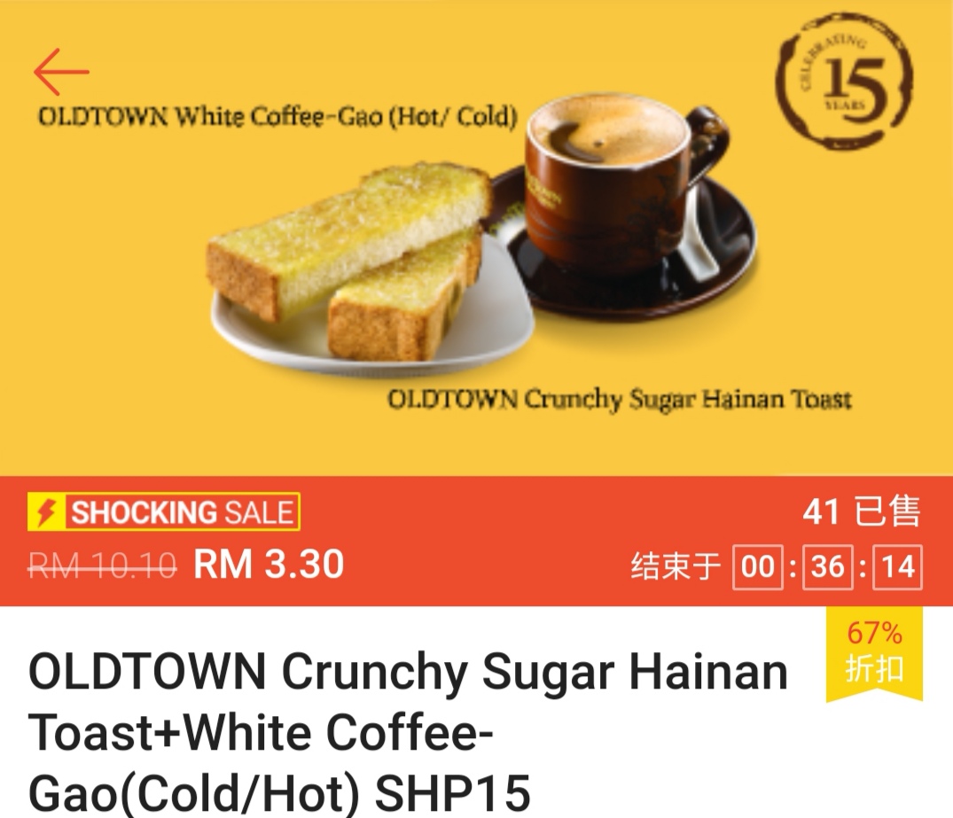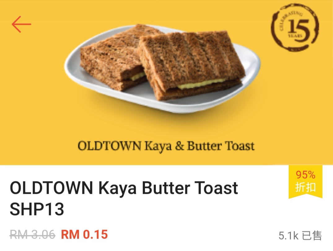 是的~这次 Oldtown 与 Shopee 联合推出超值美食优惠券!一份吐司只需RM0.15!一份吐司和白咖啡只需RM3.30!真的是太便宜啦!