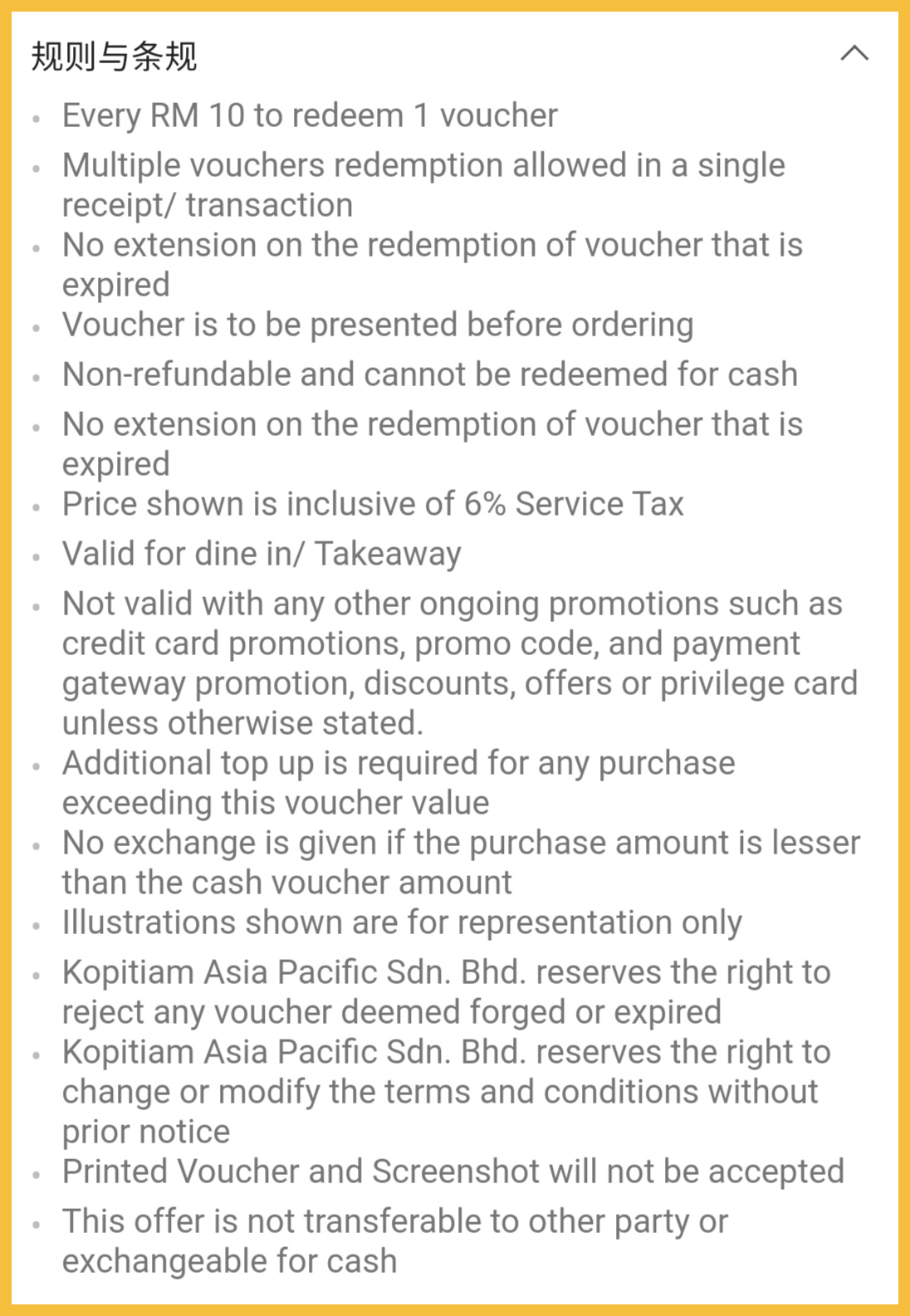 - 每消费RM10可兑换一张优惠券