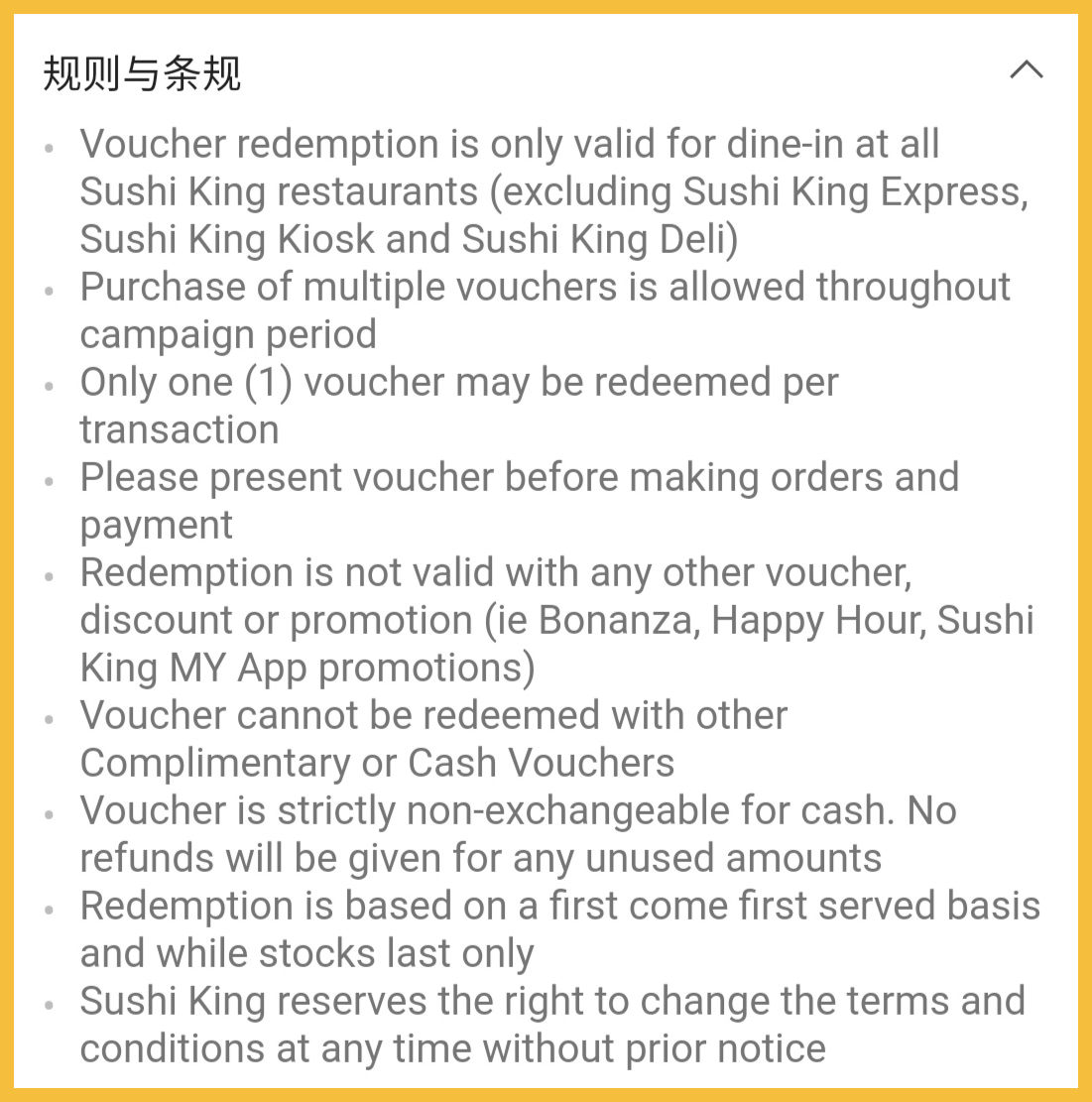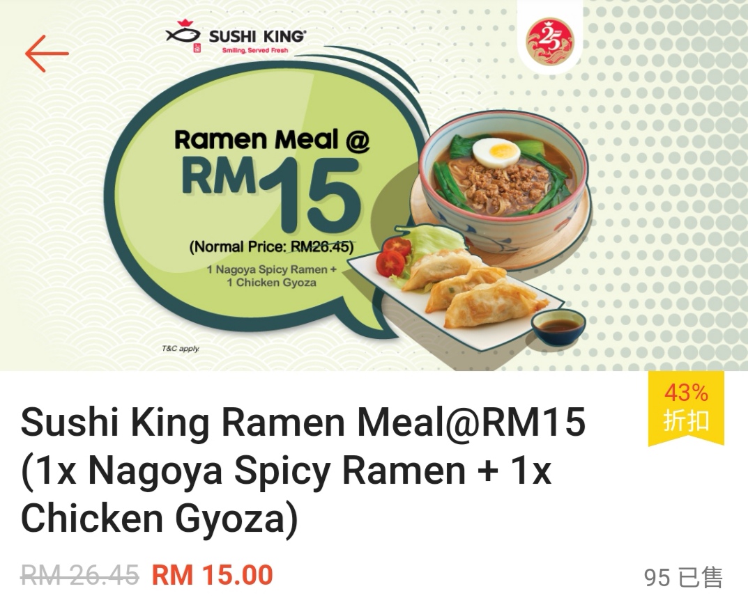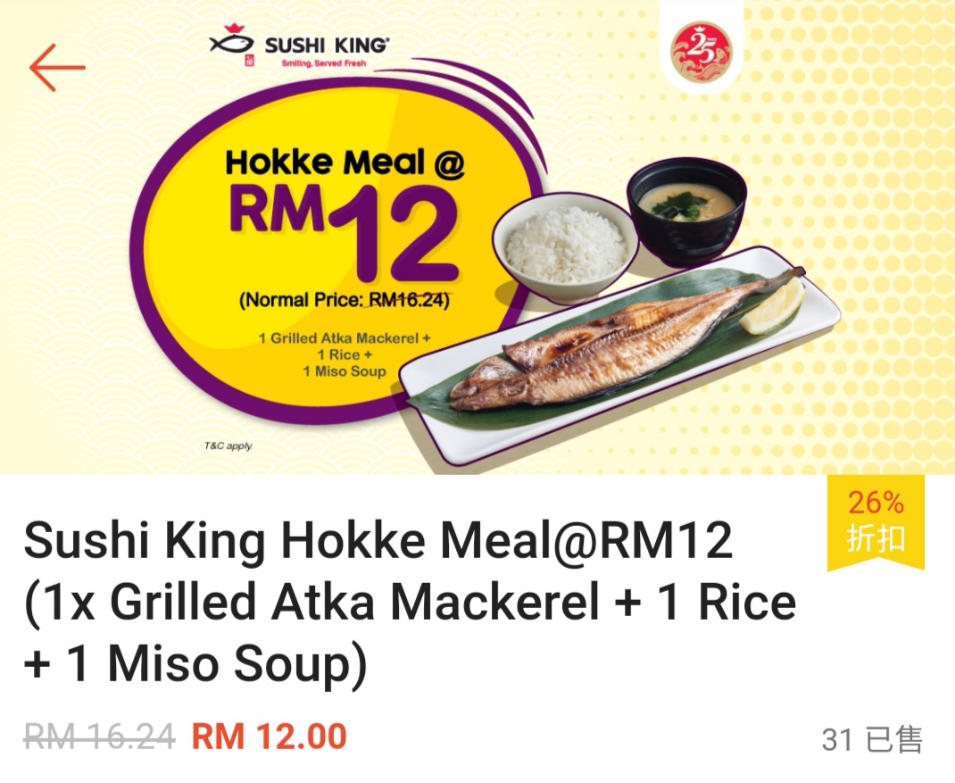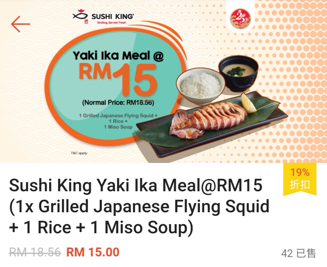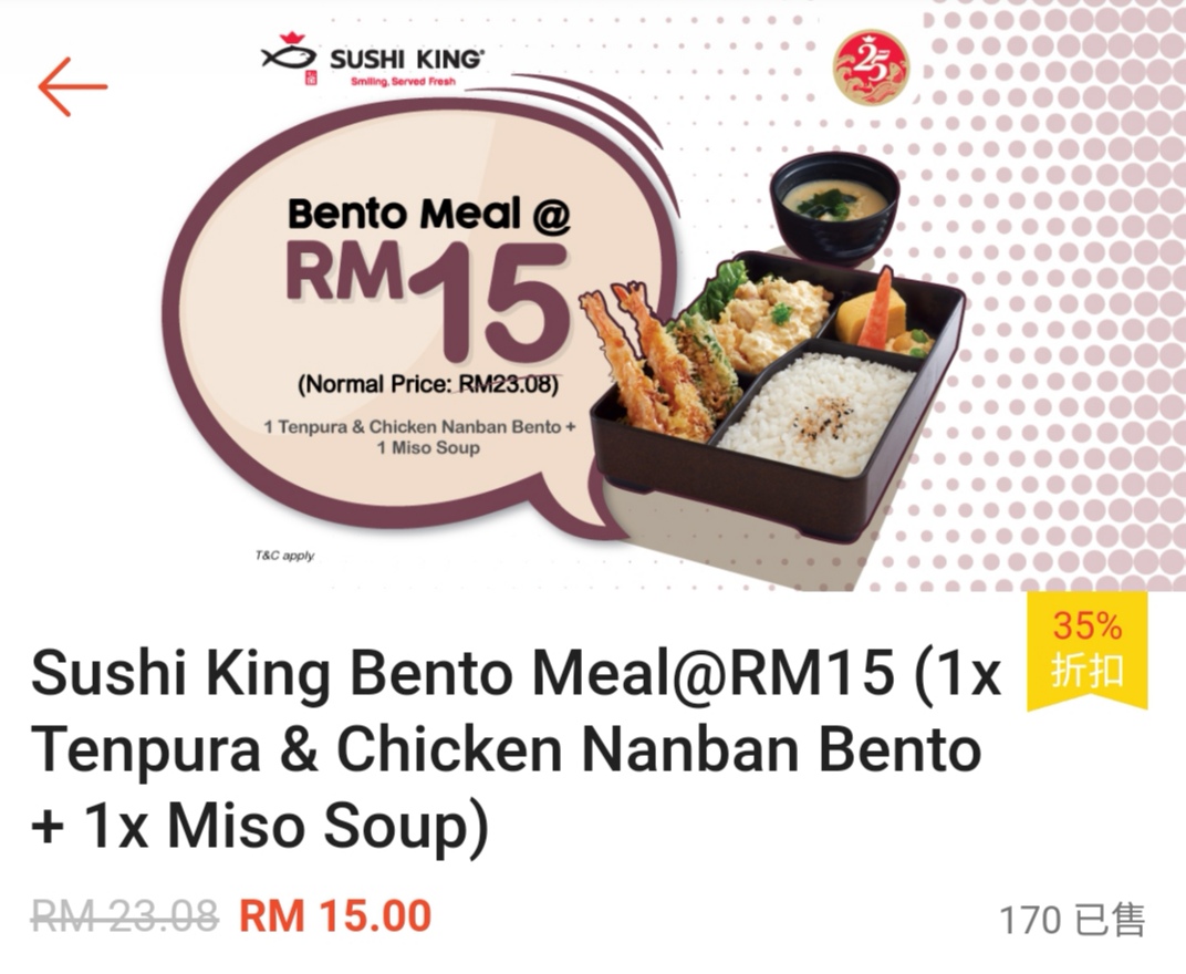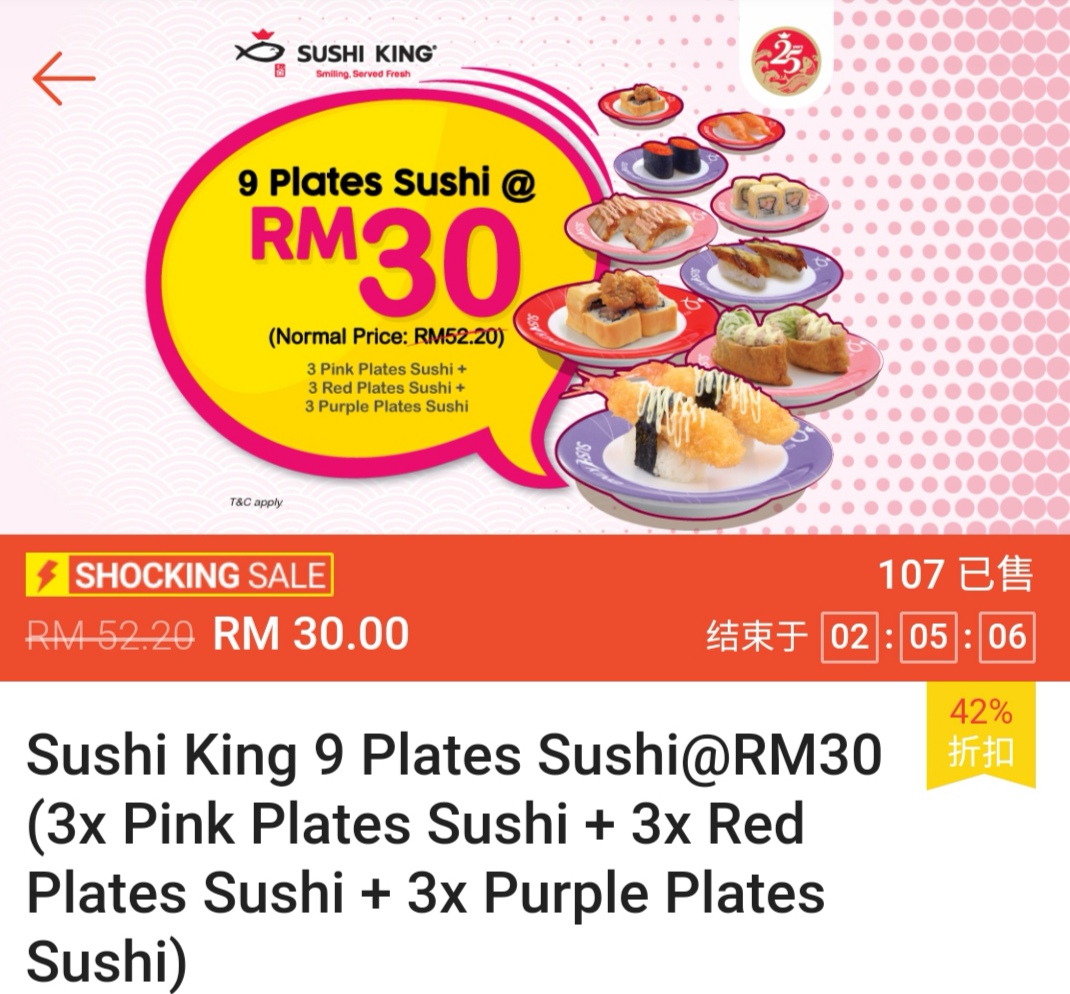 - 不适合与其他正在进行的优惠(如:Bonanza,Happy Hour,Sushi King MY App优惠)