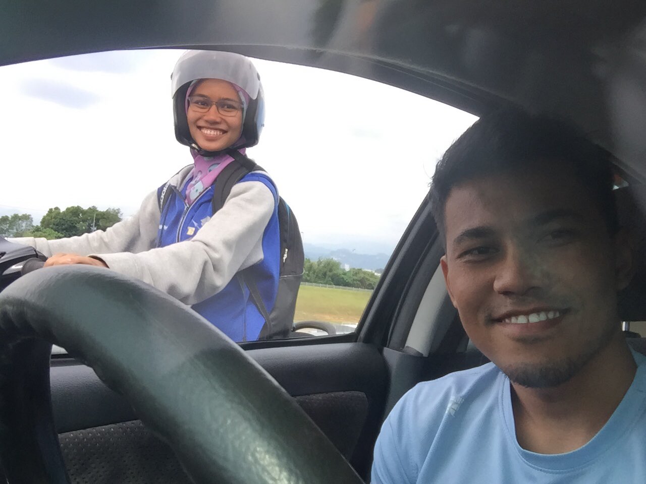 Firdaus 一方面心疼妻子,一方面为着自己无法骑摩哆而感到内疚,他全程开车载着自己的轮椅,尾随着妻子的摩哆。