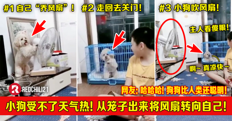 近日一段影片在社交媒体疯传,一只被关在笼子里的超萌小狗受不了夏天的炎热,竟然自己从笼子出来,将风扇转向自己的方向。短短的几天内,该影片在 Twitter 多达20万人转发和超过40万人按赞!