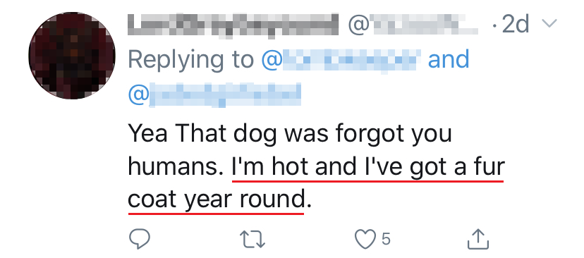▼「热狗表示:我常年披着一层厚厚的毛,我热坏了!」