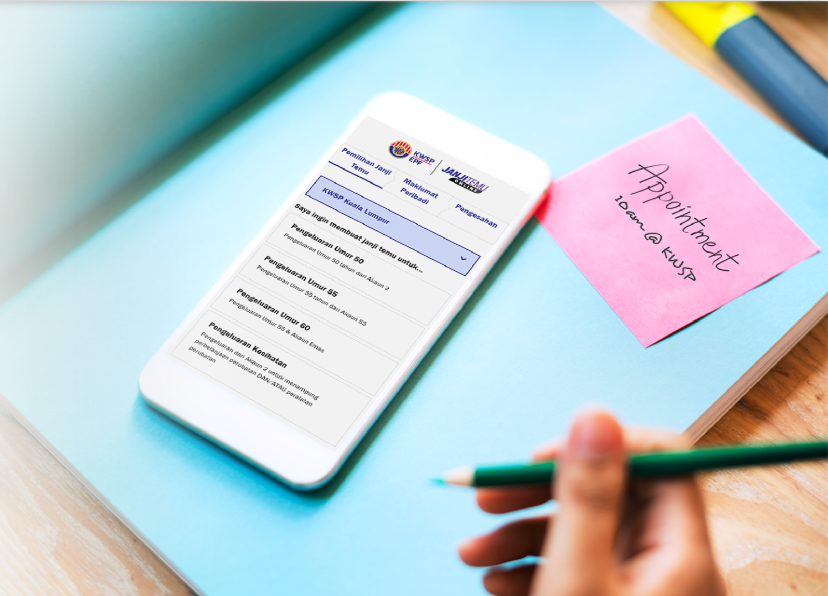 - 或拨打 KWSP 热线 03-8922 6000 来预约时间