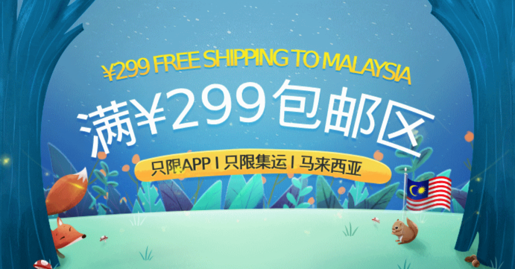 只要在这个专区购满¥299就可以享受包邮到你家,无需付第二次运费!只限淘宝手机APP和使用官方集运(海运/空运)!