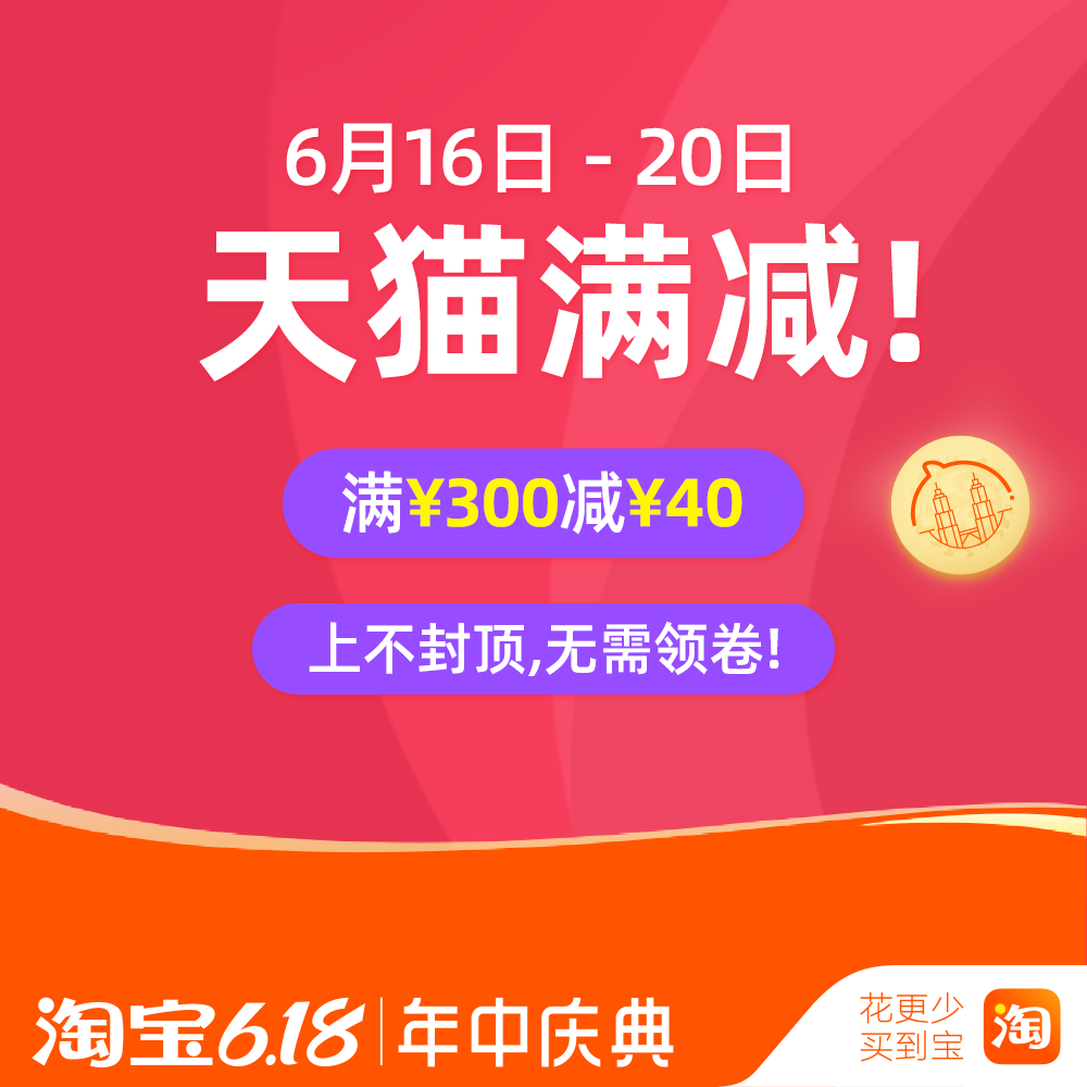 【天猫】跨店满减 – 满¥ 300减¥40(6月16日- 20日)