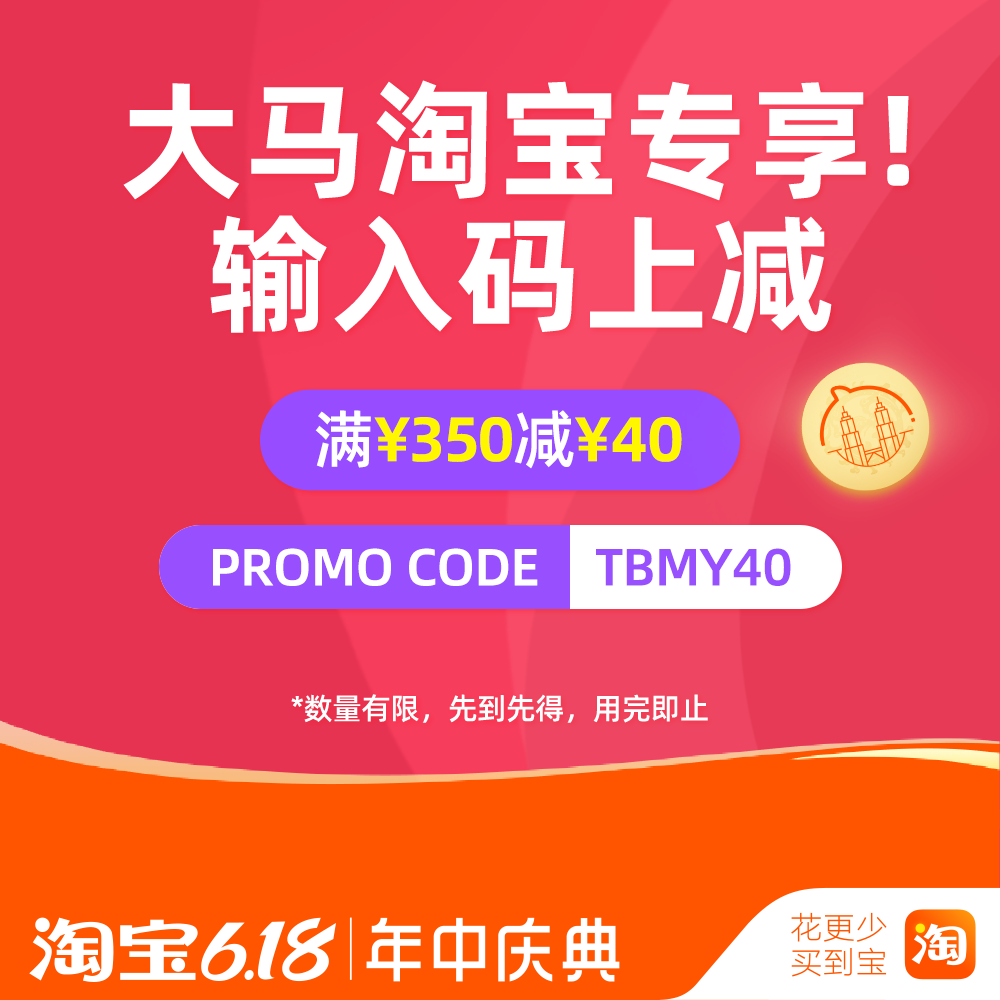 如果你没抢到 ¥618的幸运大红包,千万别灰心!现在送你一个 【满¥350减¥40】的优惠码!