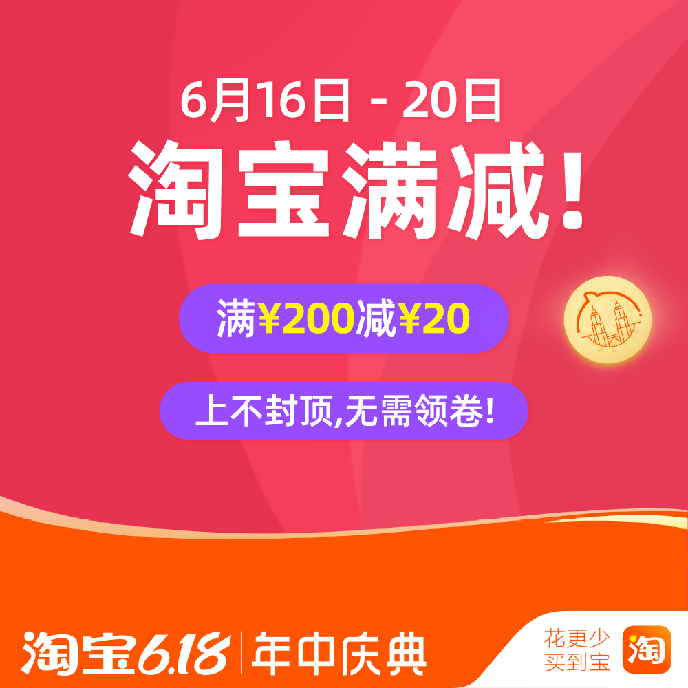 【淘宝】跨店满减 – 满¥ 200减¥20(6月16日- 20日)