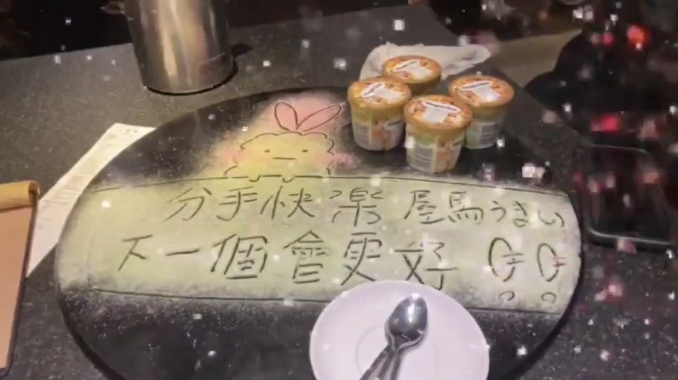 ▼ 餐桌上还写着:「分手快乐!下一个会更好!!」