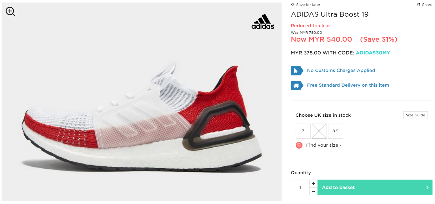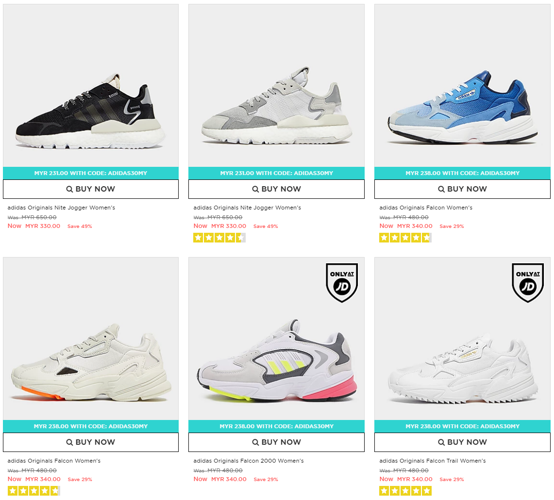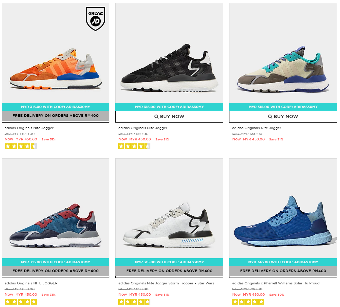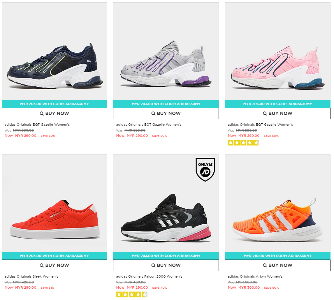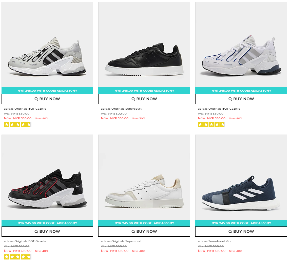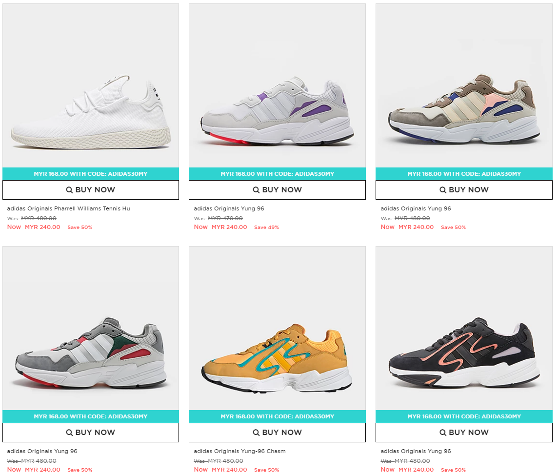 这项优惠是在大马 JD Sports 官方网推出的促销!指定款式 Adidas 鞋子可享有折扣高达50%+30%!