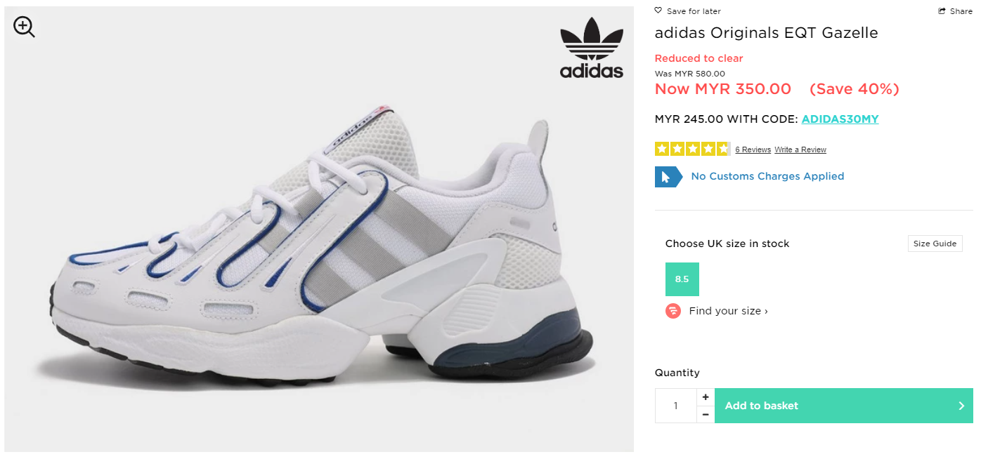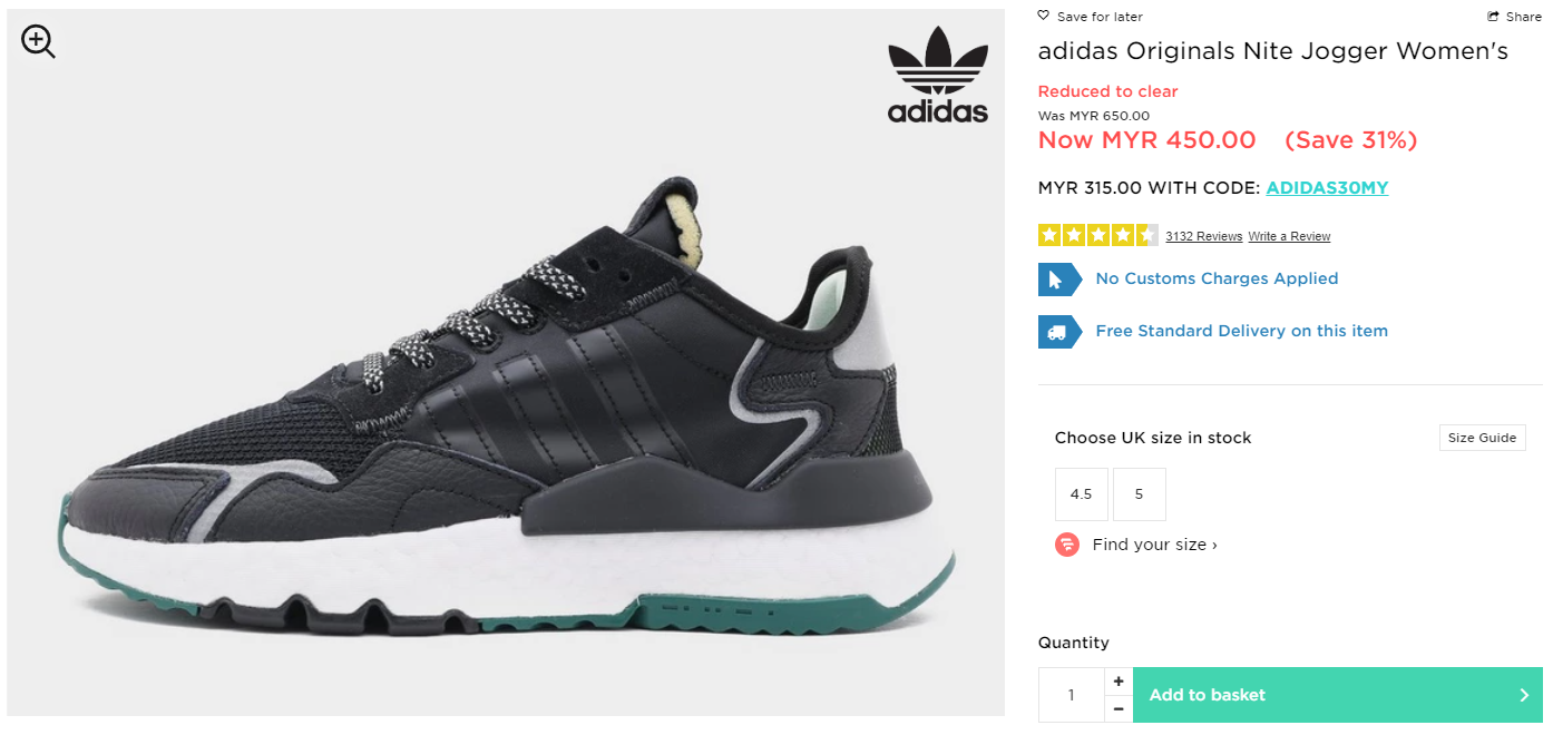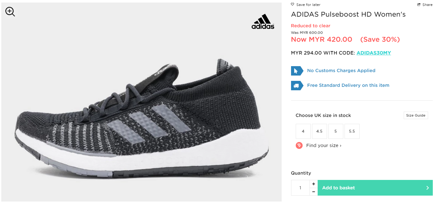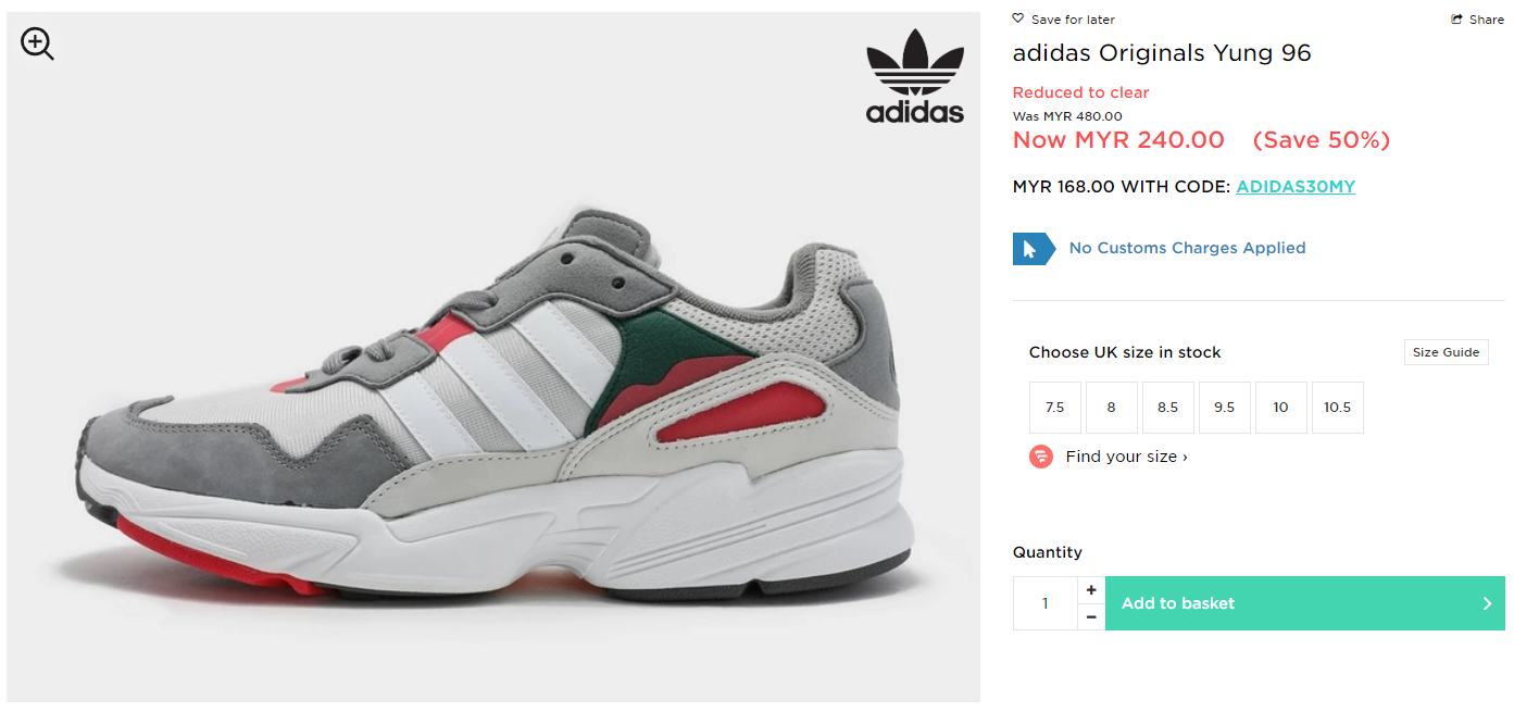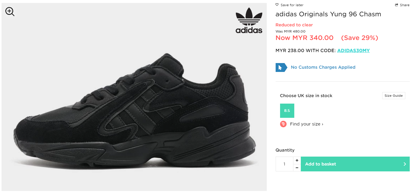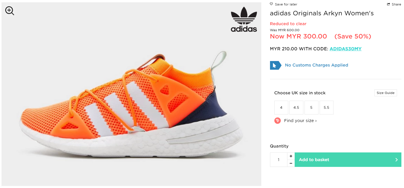 这项优惠是在大马 JD Sports 官方网推出的促销!指定款式 Adidas 鞋子可享有折扣高达50%+30%!