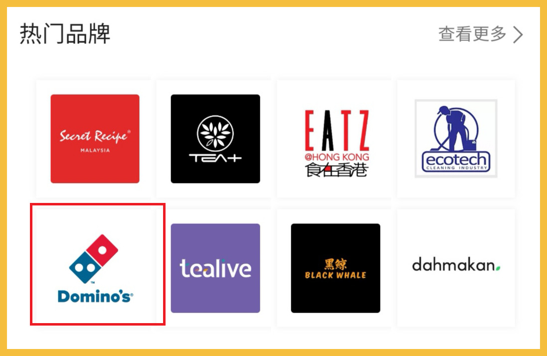 步骤2:在页面中,点击 「Domino’s Pizza 」的Logo,就会显示以下优惠券了!