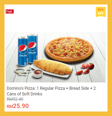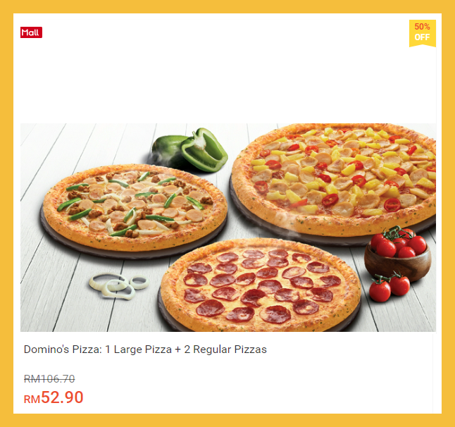 这么超值优惠,你怎能不买呢?!喜爱吃 Domino’s Pizza 的朋友,可趁这次机会购买哦!