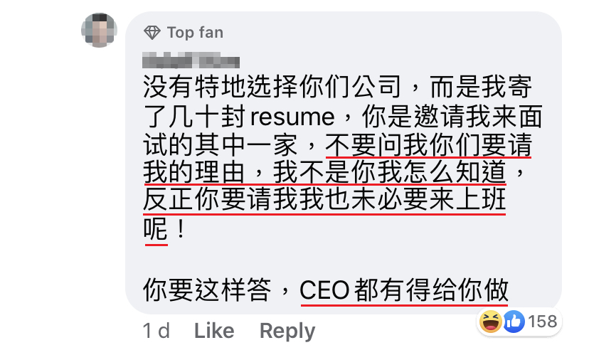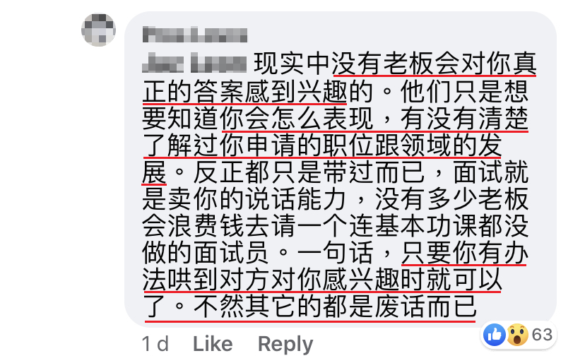 Resume写到天上有地下无,一interview十问九不应,问啥啥不会,基本MS excel 和 word 都不懂,那当初你 resume 是写来搞屁的吗?Resume就是用来了解你的能力是否与我们公司要求相符,如果不符合就省略大家面试时间,而你却是在制造麻烦。